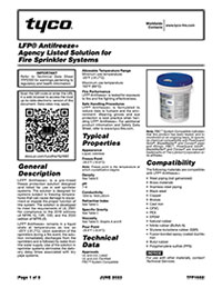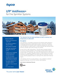 Tyco’s LFP® Antifreeze+ is listed for system volumes up to 500 gallons and designed for wet sprinkler systems subject to freezing temperatures that can damage equipment or impede functionality.