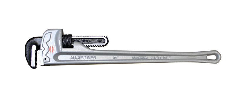 Maxpower aluminum pipe wrenches weigh up to 40% less than cast iron, yet stand up to heavy-duty industrial piping jobs.