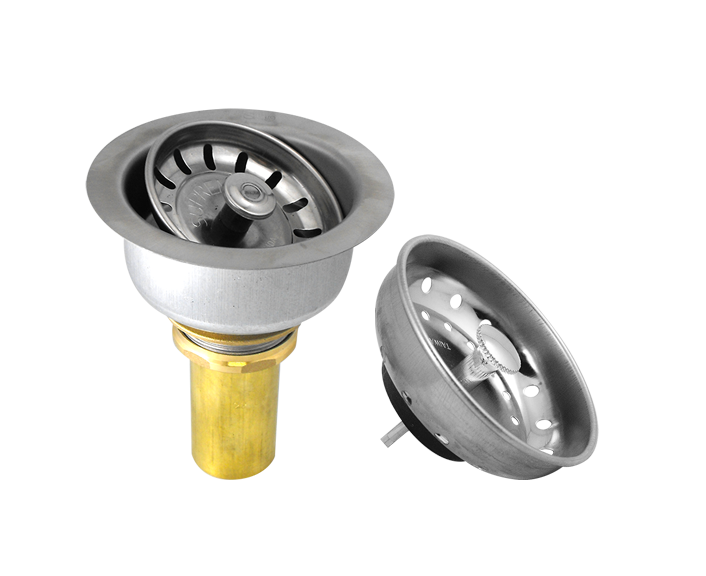 – Stainless steel double cup strainer – Arrow clip style basket – Fits 3½” to 4″ sink openings – Positive sealing crumb cup – Brass shank and tailpiece